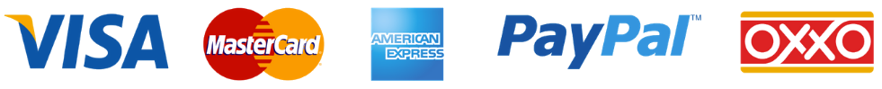 Aceptamos todas las tarjetas de crédito, débito, Paypal y también pagos en efectivo en Oxxo. Nota: los pagos en Oxxo no aplican a meses.